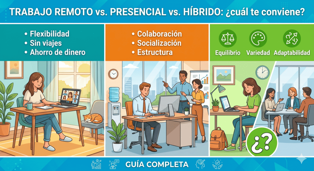 Trabajo remoto vs. presencial vs. híbrido: cuál te conviene?