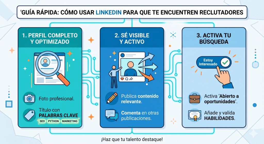 Aviso importante: Este artículo es una guía práctica basada en buenas prácticas generales. Los resultados pueden variar según tu industria, ubicación y nivel de experiencia. LinkedIn es una herramienta, no una garantía de empleo. La constancia y la calidad de tu perfil son clave.